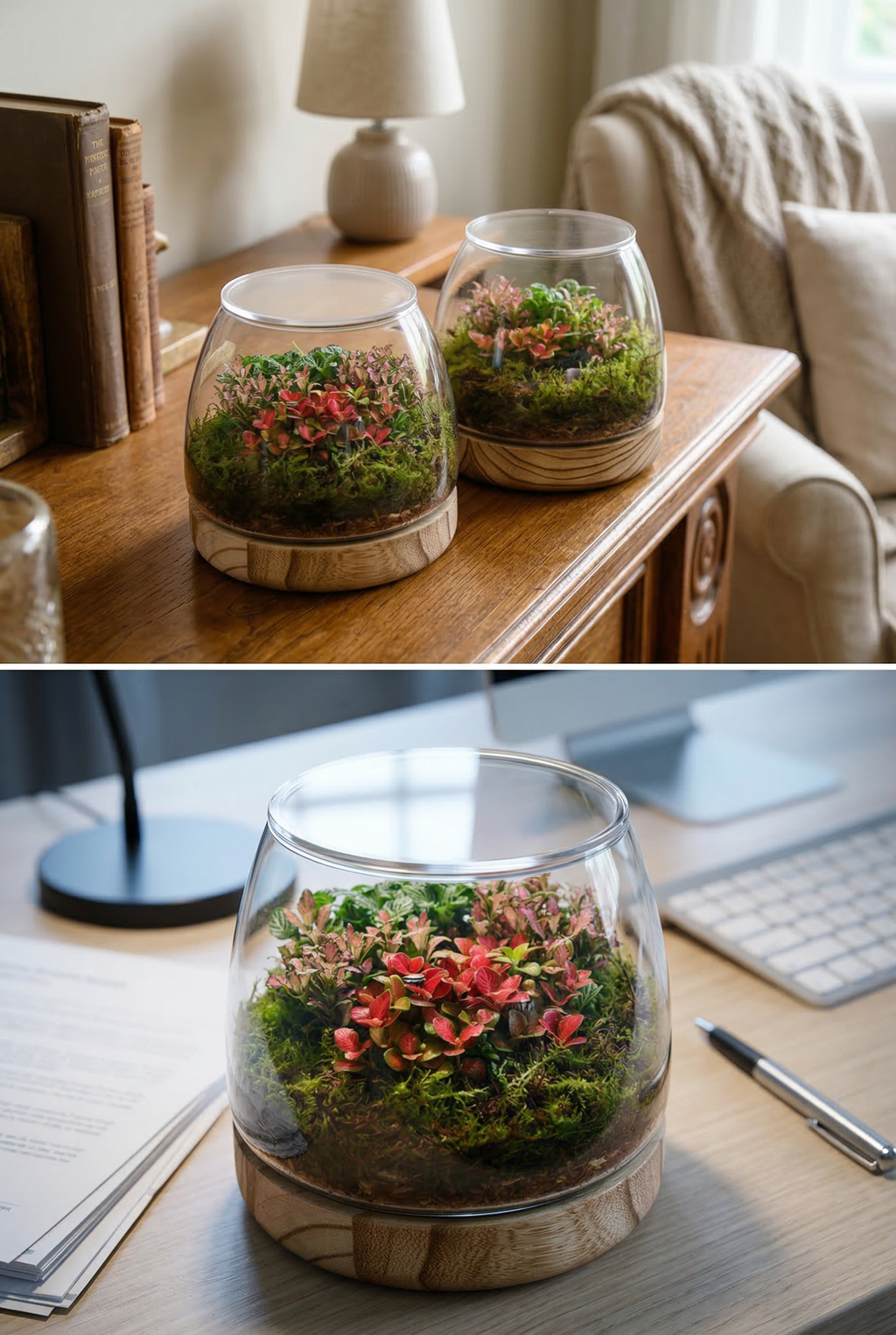 A compact, low-maintenance terrarium designed to bring a calm, natural touch into any space.